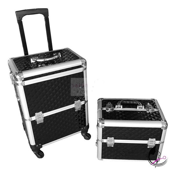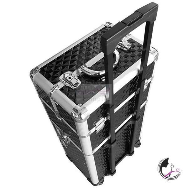 Horní část má rozkládací přihrádky. V dolní části je vyjímatelná zásuvka s přihrádkami a kufr má své vlastní víko.
