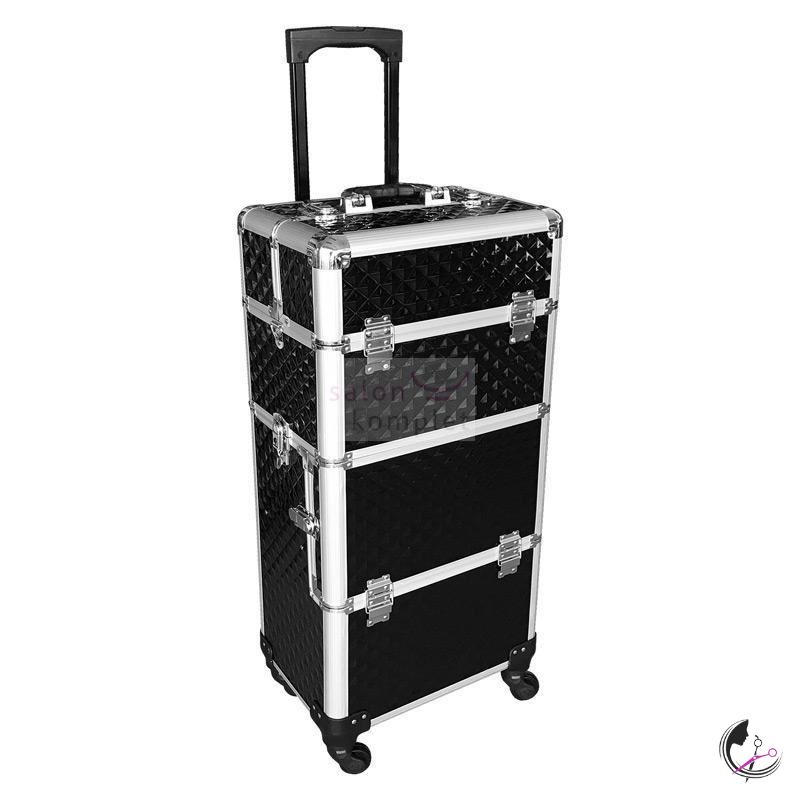 Černý multifunkční kufr 2x1 na kolečkách. Kufr lze rozložit na dva na sobě nezávislé kufříky.
