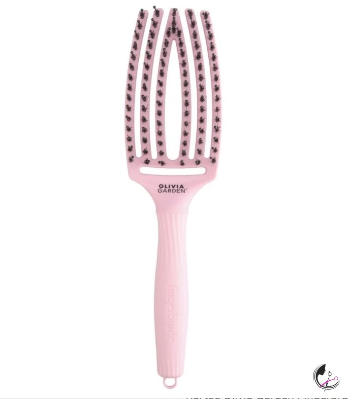 Olivia Garden Fingerbrush je revoluční kartáč navržený pro snadné a šetrné rozčesávání vlasů. Jeho zakřivený tvar dokonale kopíruje tvar hlavy, což zajišťuje maximální pohodlí při používání a precizní styling. Kartáč kombinuje 100% kančí štětiny a nylonové štětiny, které dodávají vlasům přirozený lesk, zároveň zajišťují jemné a efektivní rozčesávání, aniž by vlasy tahaly nebo poškozovaly.
