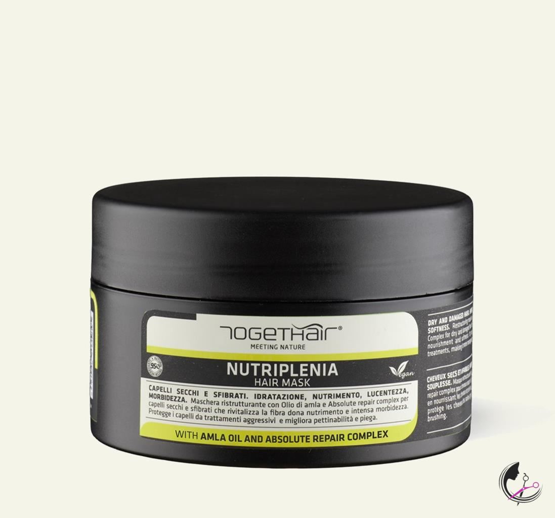 Maska Togethair Nutriplenia Hair Mask poskytuje intenzivní regeneraci a hlubokou výživu. Obnovuje strukturu vlasového vlákna, posiluje ho a chrání před poškozením. Díky komplexu Absolute Repair Complex dochází k uzavření kutikuly a ochraně před ztrátou hydratace. Vlasy zůstávají hebké, vyživené a snadno upravitelné, zatímco olej z amly a vitamín E dodávají zářivý lesk a vitalitu.